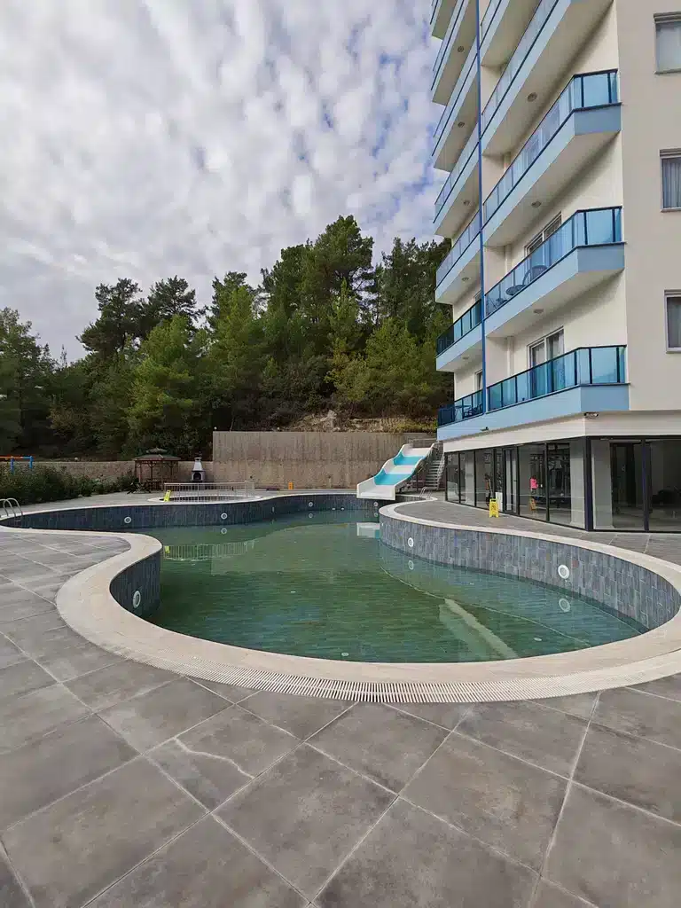 Diese 1+1 Wohnung Alanya Residence ist Teil eines hochwertigen Komplexes mit Innen- und Außenpools, Fitnessraum, Sauna, Dampfbad, Salzraum und Schockraum. Zusätzlich stehen Kinderspielbereiche und gepflegte Außenanlagen zur Verfügung.