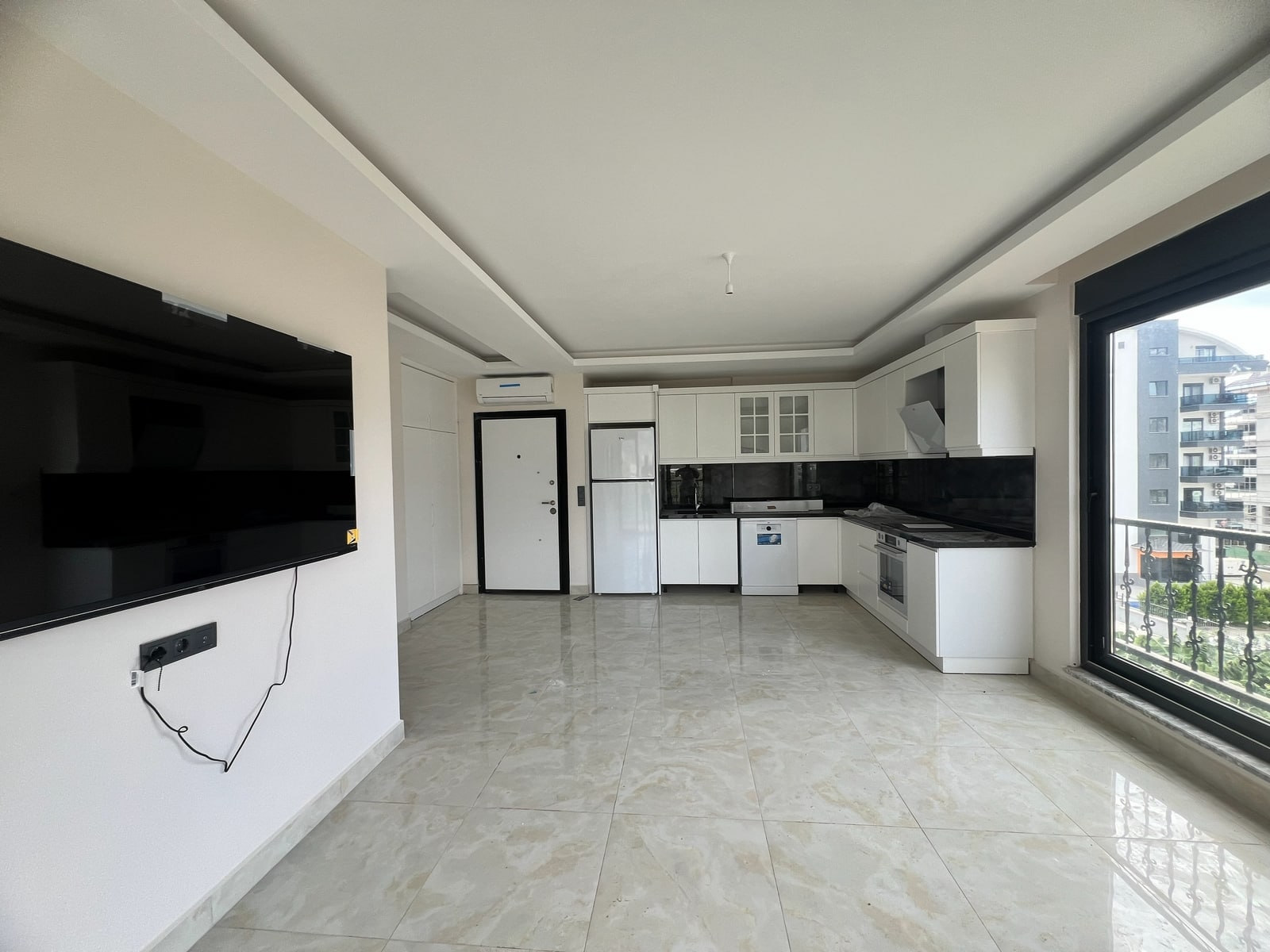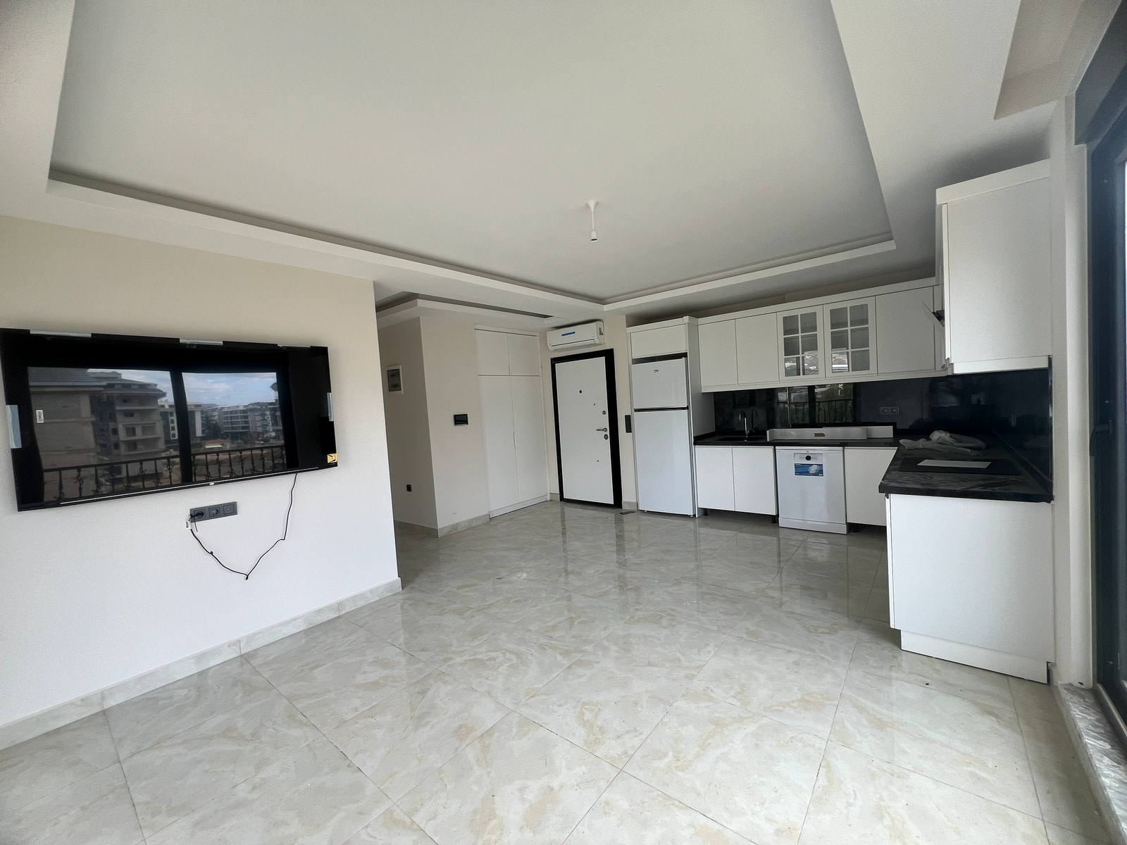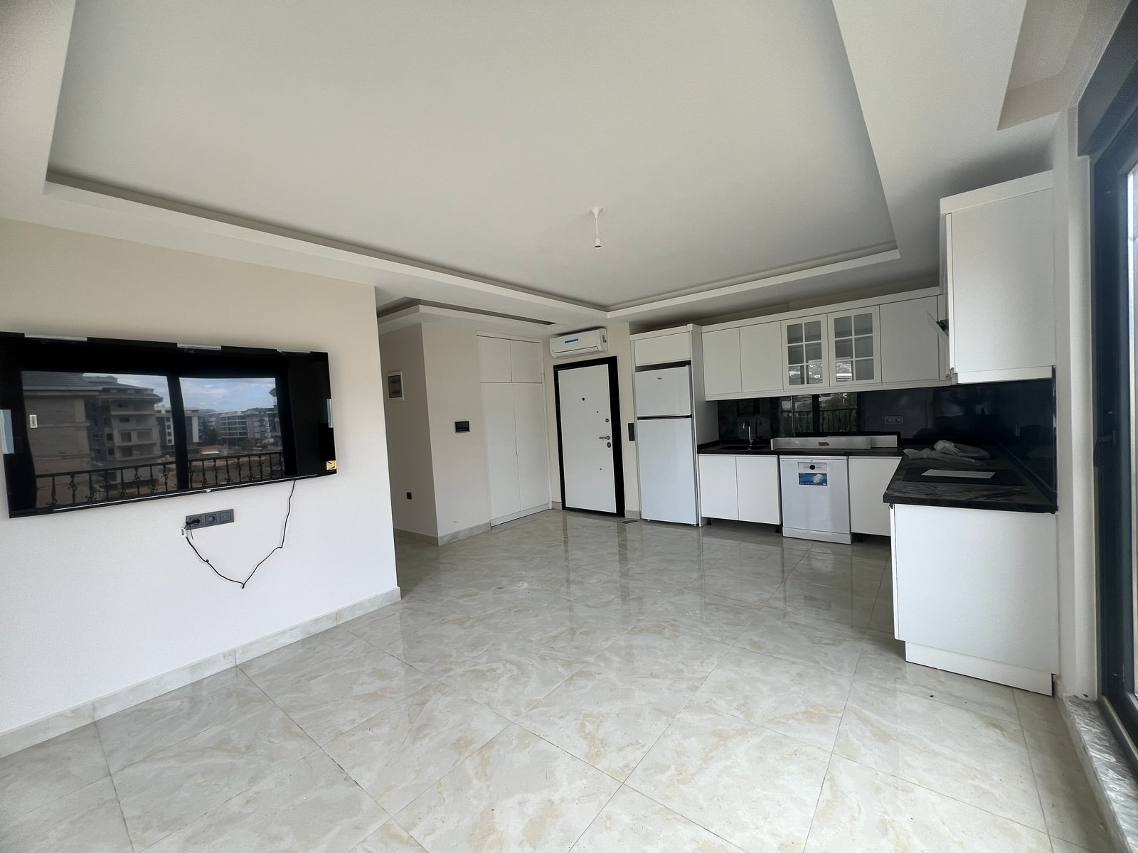 Diese Kargicak 2+1 neue Wohnung befindet sich in der Orange Vista Residence Alanya im 3. Stock und bietet modernen Wohnkomfort.