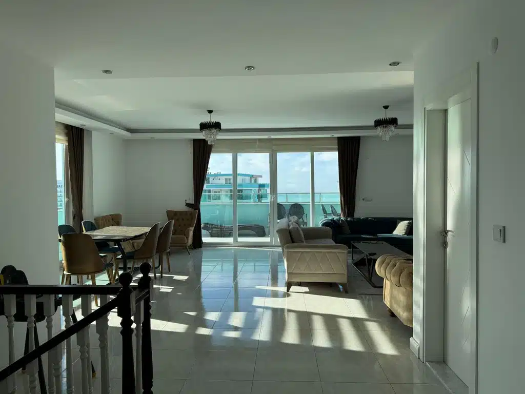 This furnished duplex apartment Alanya comes fully equipped with luxury furniture, ready for immediate living or rental investment. The highlight of the property is its full panoramic sea view, creating a unique Mediterranean lifestyle experience.