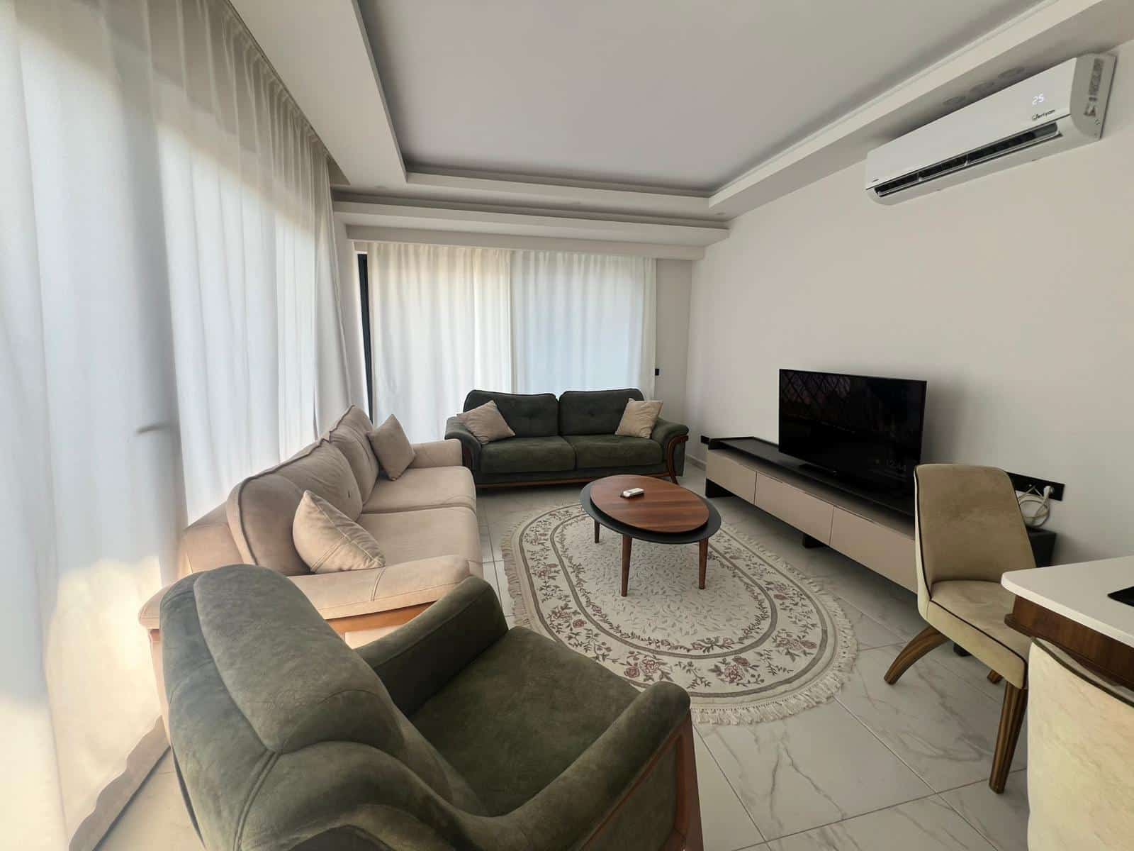 The 3+1 furnished duplex in Kargicak Palmyra Residence is ideal for families looking for a large apartment suitable for permanent living, holiday use, or rental income. Due to the high demand for Kargicak Palmyra Residence duplex apartments, this property also offers strong investment potential.