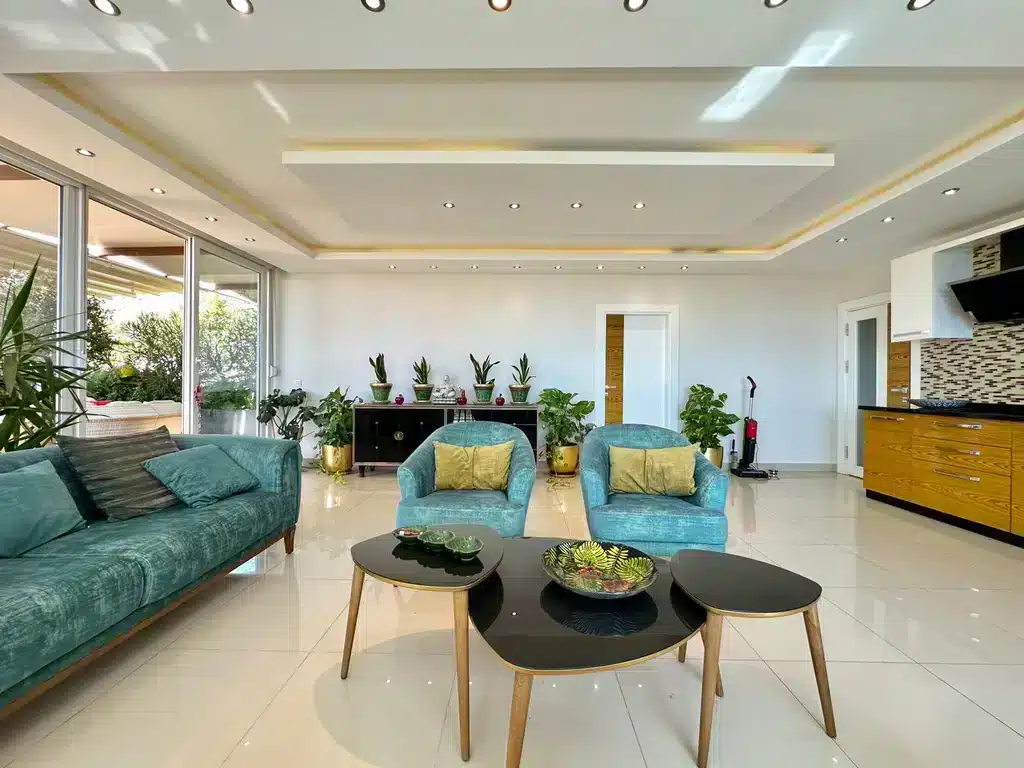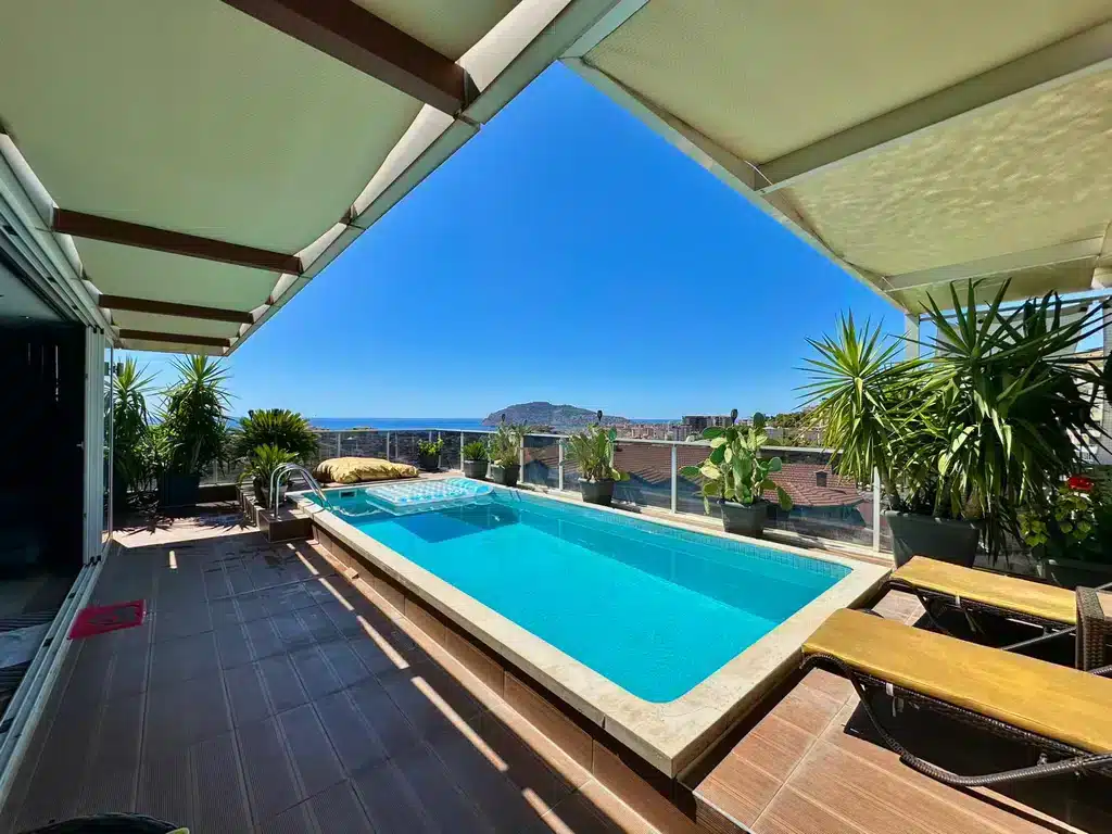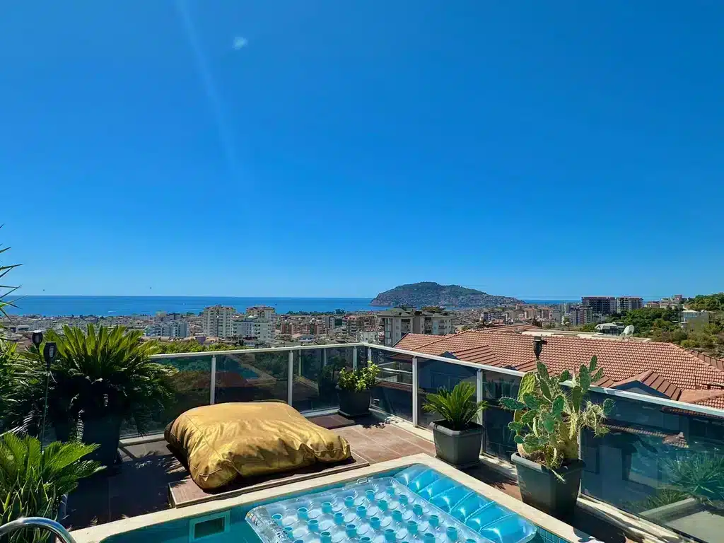 This Cikcilli luxury penthouse Alanya in Alaiye Residence penthouse for sale represents the pinnacle of modern living, combining space, privacy, and breathtaking views. With an impressive 330 m² of living area, this sea and castle view penthouse Alanya offers full panoramic views of the Mediterranean and Alanya Castle.